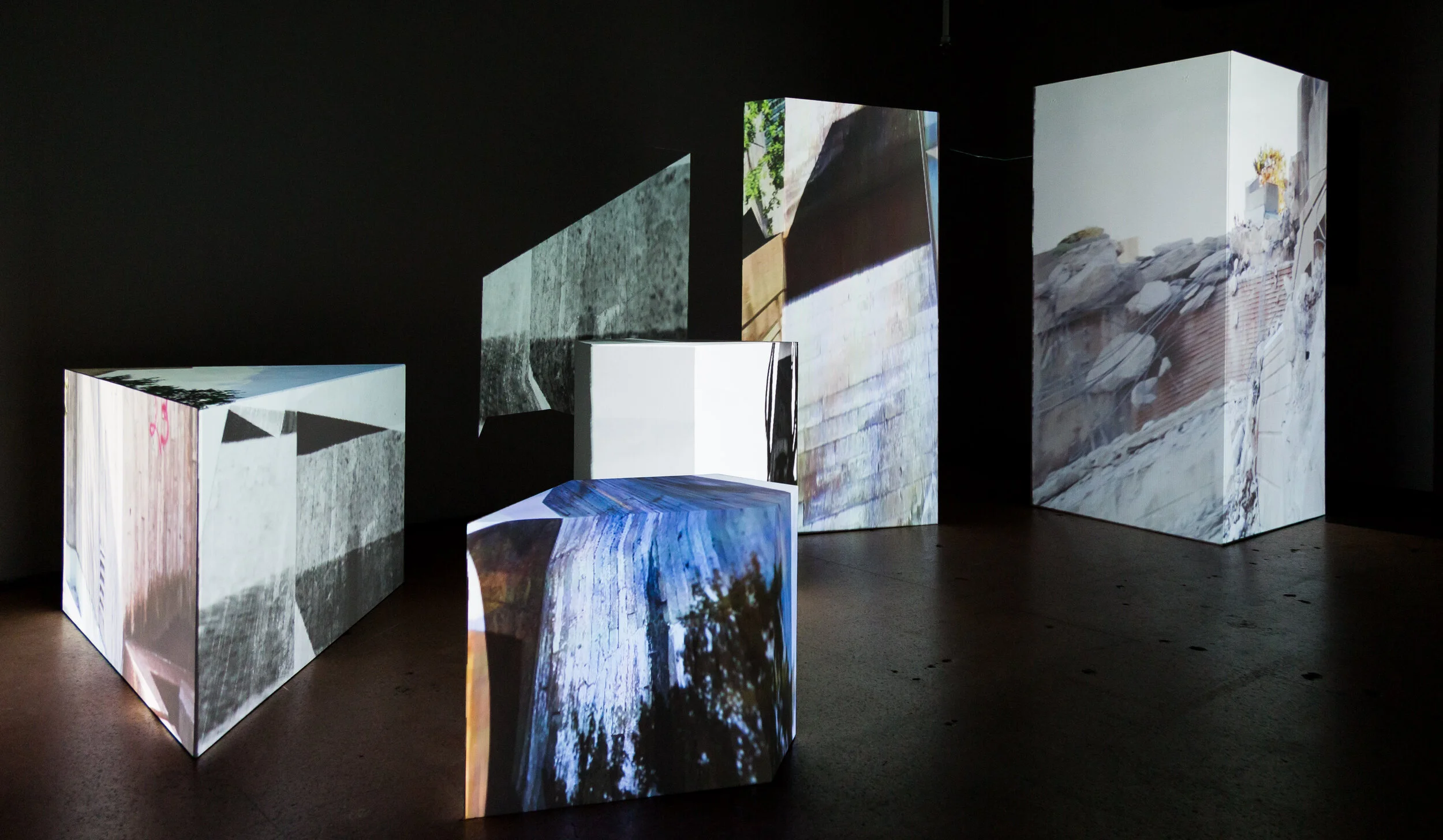 As a collaborative audio-visual project, Collis and Donadio documented the fountain's last days to conjure a meditation on the essence of this urban landmark. Using projection-mapping software, video shot on-site traverses large sculptural forms that reference shapes of the fountain itself, culminating in a sensory memorial experience.